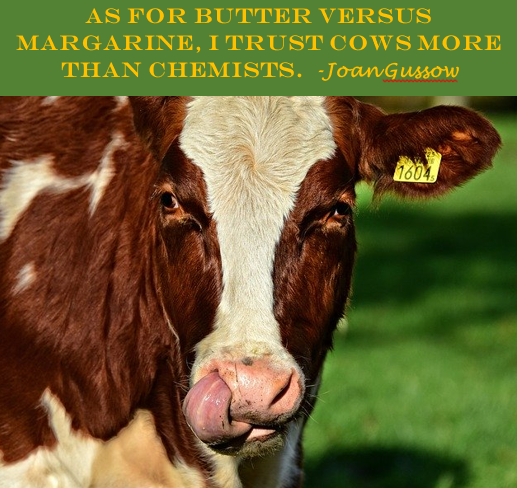 Don’t get me wrong, there are good reasons why someone might prefer margarine (for example, if you can’t eat dairy or prefer not to eat animal products). And, some of the newer margarines have low saturated fat and are free of trans fat – these are good things.