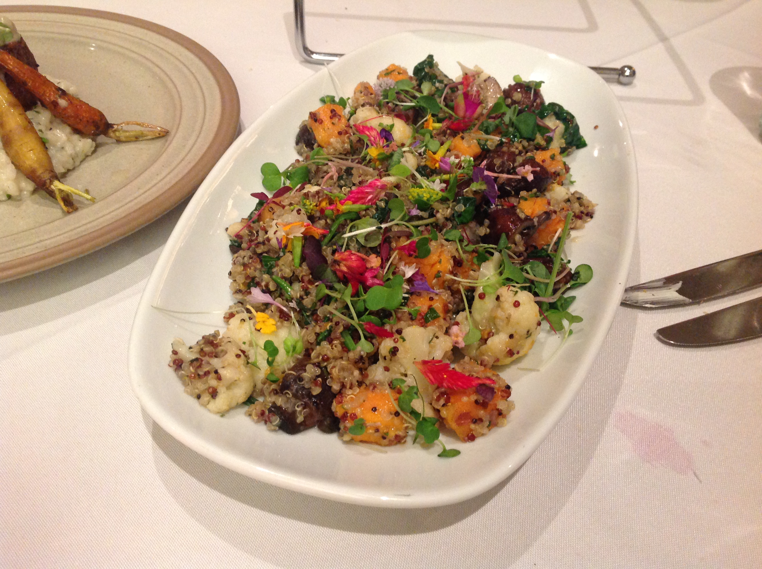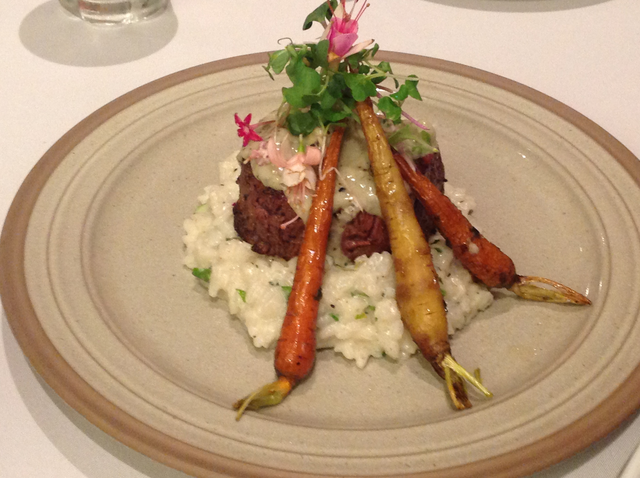 The seasons! My menus are influenced by the seasons. I like to use in-season ingredients…and local ingredients whenever possible. Right now, of course, we are using a lot of local tomatoes, corn, potatoes, melons and other produce. We have been planning for some of our Fall events to use ingredients that will be in-season soon — we just put a butternut squash barley risotto in the line-up for an event coming up in the next few weeks!