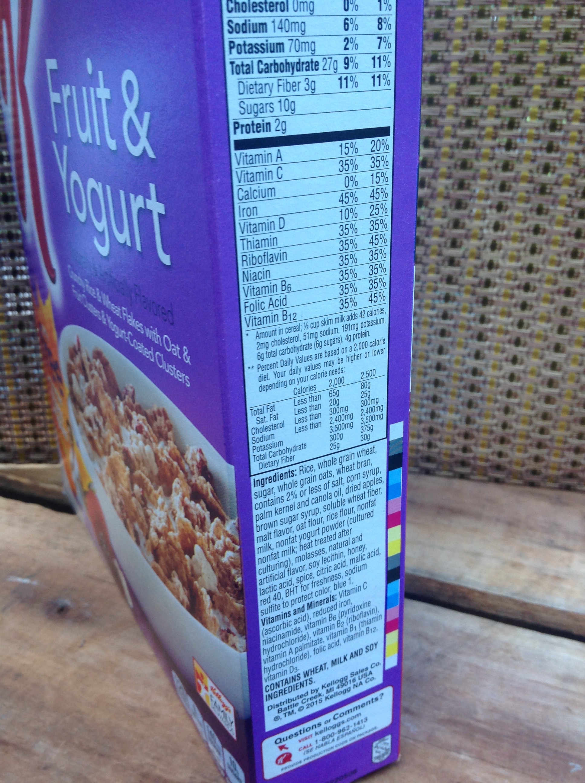 But, wait, maybe the fruit would contribute to the sugar content? Nope…the list of ingredients does not include those strawberries and blackberries on the front of the box. And the yogurt…well, see for yourself! This time, it’s the Kelloggs marketers who are high-fiving themselves when the box crosses the grocery store scanner!
