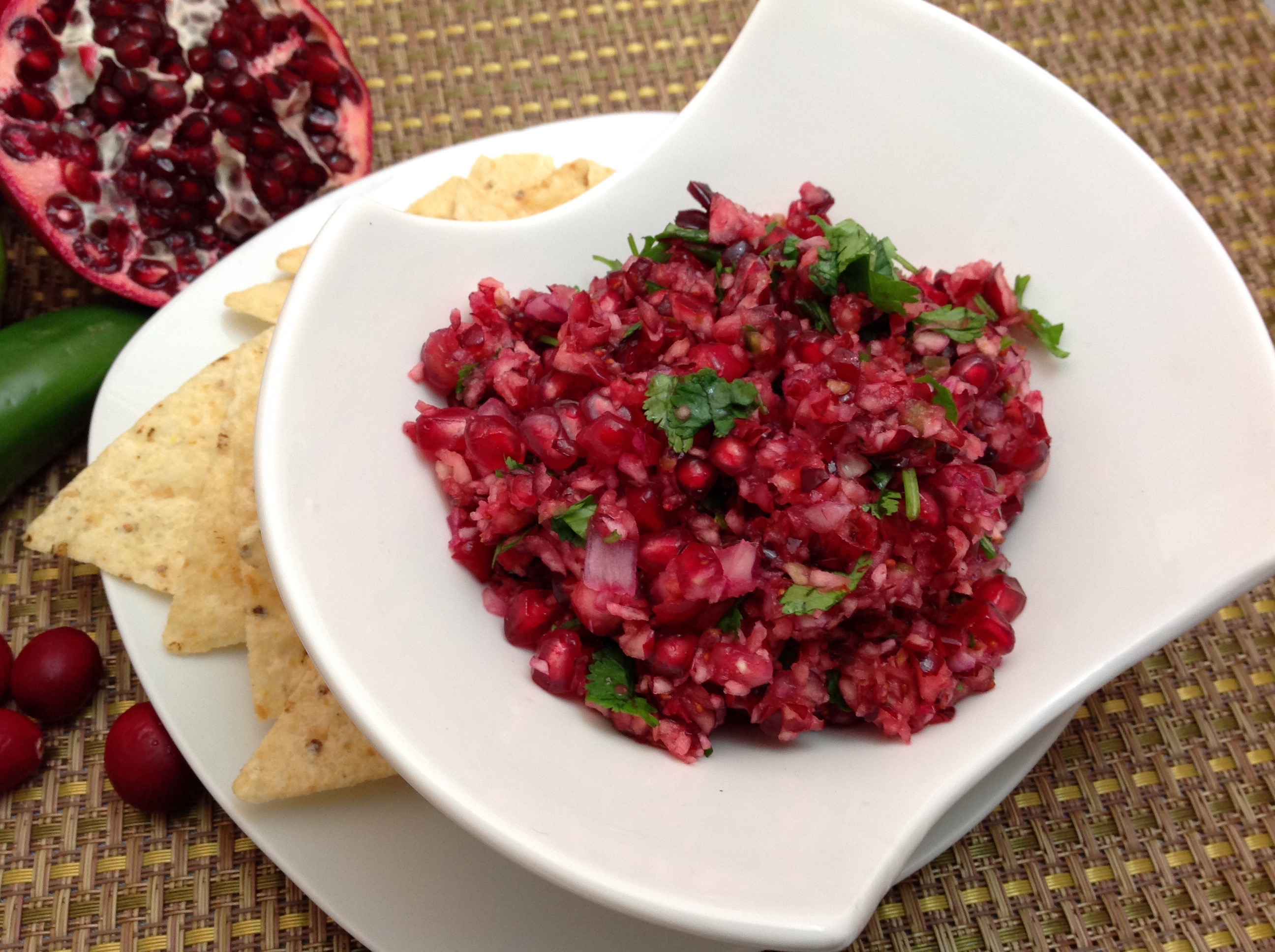 Christmas Cranberry Salsa – this salsa has a dazzling festive color and uses two superfoods (cranberry and pomegranate). While it is perfectly delicious eaten with a spoon, it’s even better enjoyed with tortilla chips! It will definitely impress your guests and disappear quickly!
