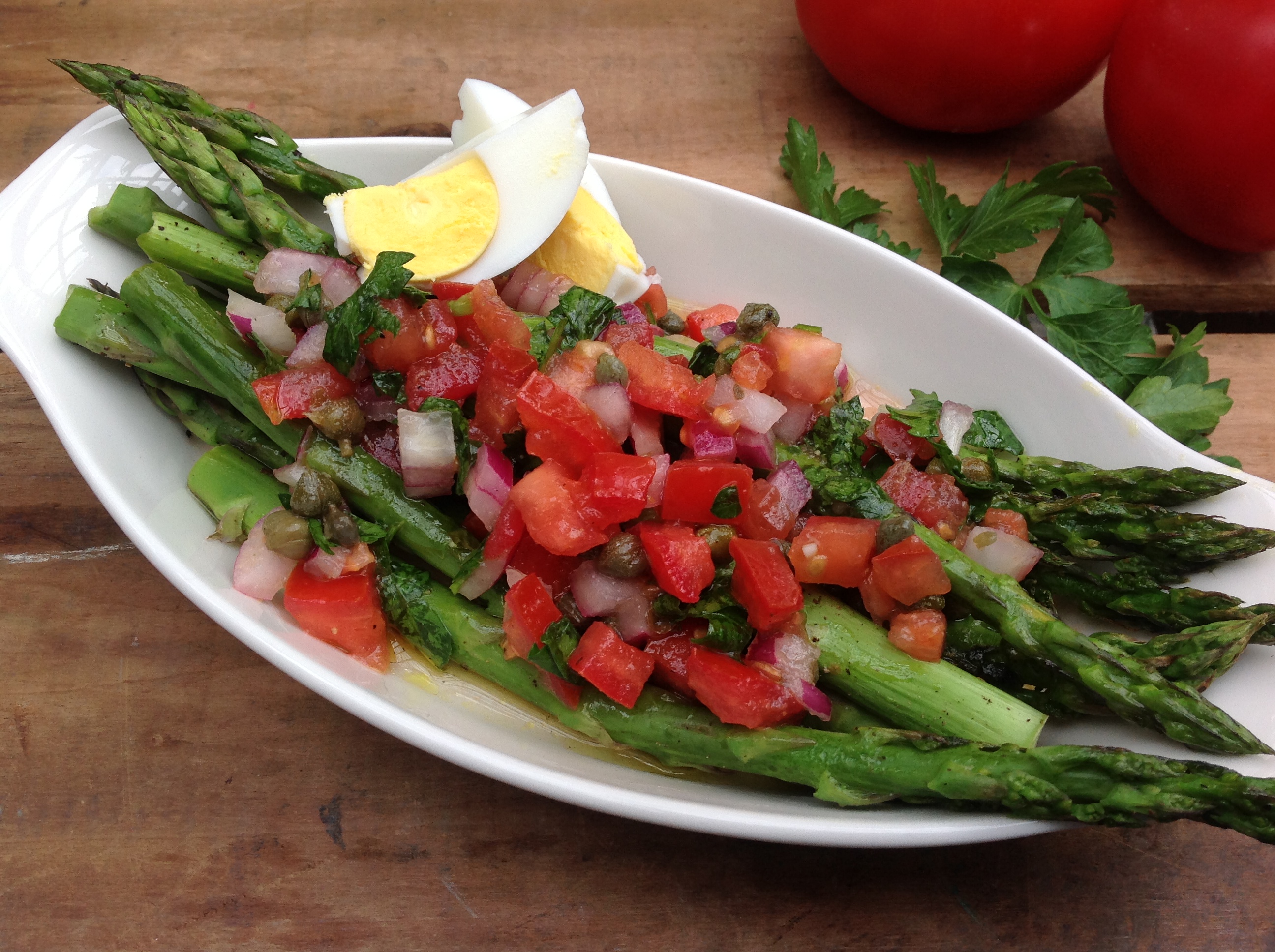 Asparagus is available in different varieties…green, white and purple. Green is the most common, and purple can be slightly sweeter and it turns green when cooked. You want to look for crisp and bright green stalks, with compact tips. It’s a good sign if the stalk snaps when bent. If possible, buy stalks with equal thickness so they will cook evenly. Whether you buy thin or thick stalks is personal preference. Thin stalks are not necessarily more tender than thick ones. If the cut end of the stalk is white or much lighter than the rest of the asparagus, it can sometimes be tough and will need to be broken off before eating. Store asparagus in the refrigerator upright in a large mason jar or container with the bottom 2 inches soaked in water.