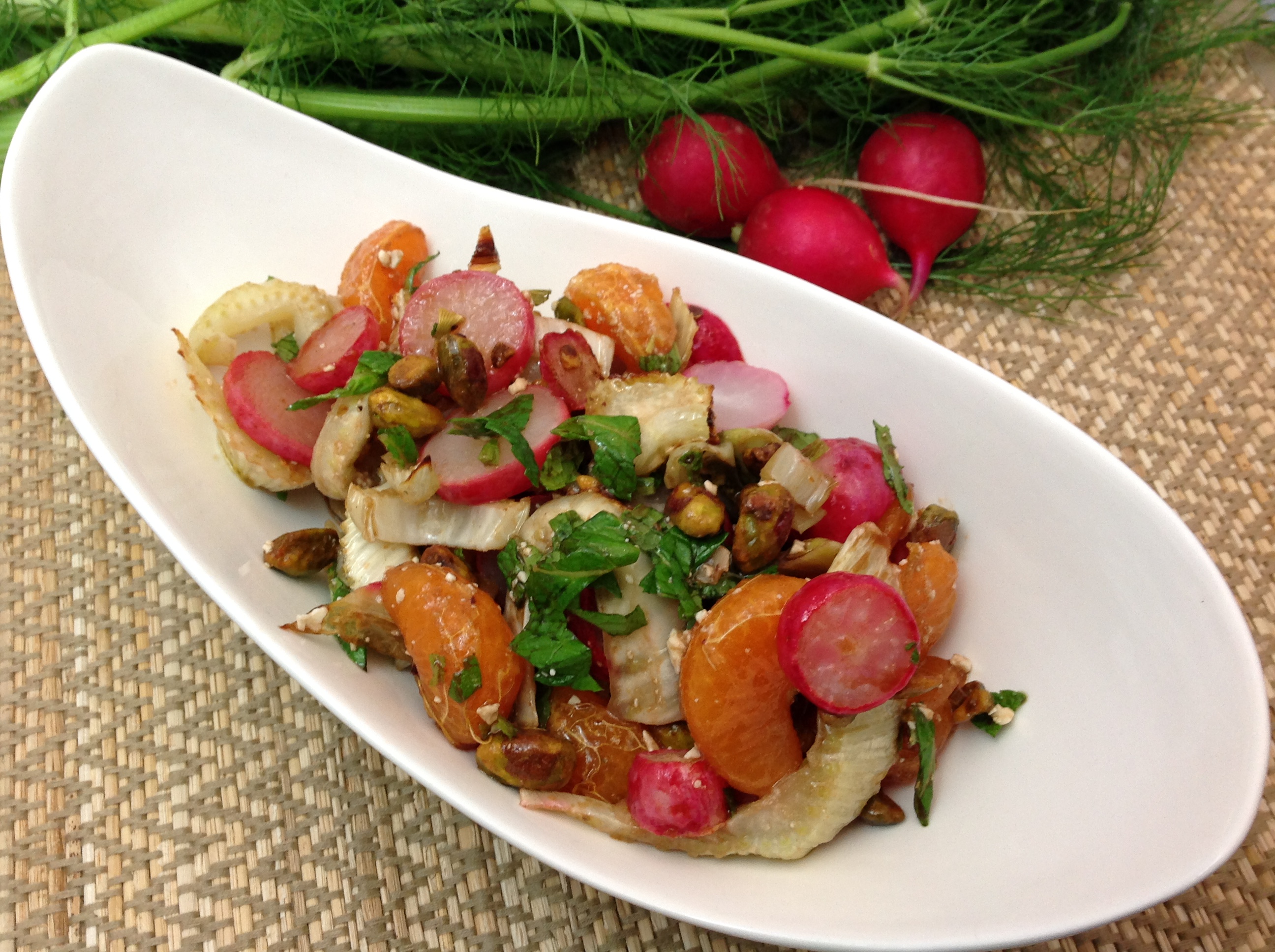 Radishes should look fresh and crisp, with few cracks and brown spots. They should feel firm when you squeeze them. If the greens are still intact, they should look fresh and healthy. To store them, cut the radishes away from the stems and leaves and store in an open plastic bag in the refrigerator (leaving the leaves attached can cause moisture and nutrients to be drawn out of the radishes). And, you can use the greens — they don’t stay fresh very long, so enjoy them within a day or two. If your radishes dry out, you can put them in a bowl of ice water for 5-10 minutes to help their crunch come back to life!