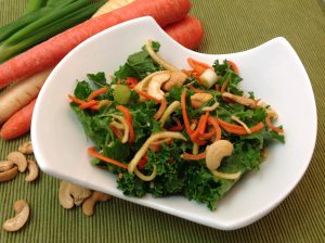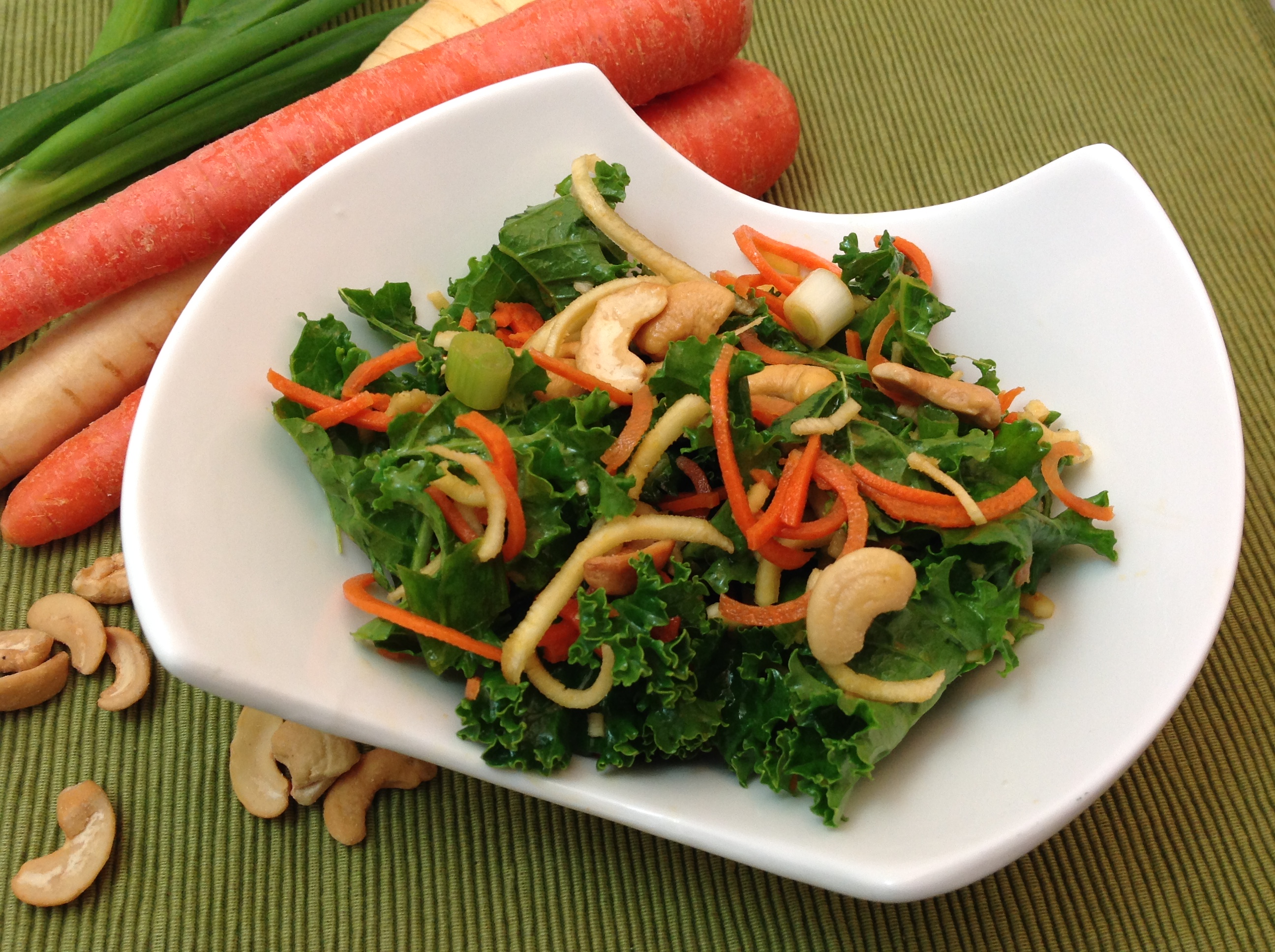 Crunchy Carrot and Parsnip Kale Salad- Chermoula-Inspired Spice Roasted Vegetables and Chickpeas