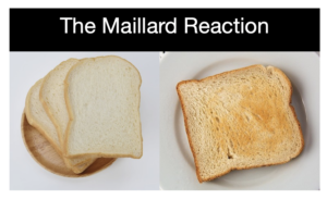 A super simple example is toast. When you pull your bread out of the toaster, the flavor, color and aromas have changed – that’s the Maillard reaction at work! Why does your steak taste and smell so good when seared at high heat, forming a tasty crust on the outside without overcooking the inside? Yes, you achieved a Maillard reaction.