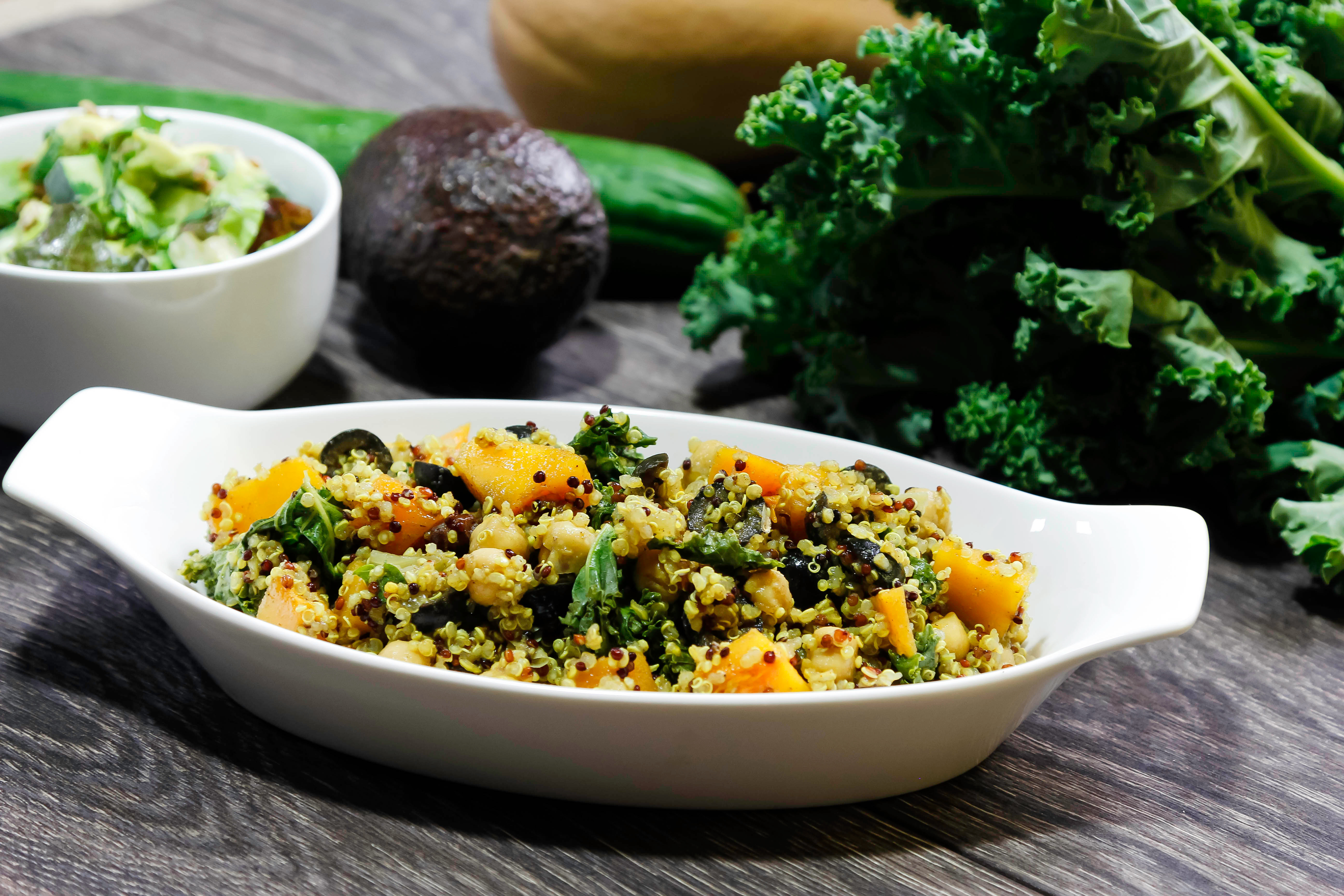 Add whole grains! One of the easiest ways to make a salad heartier, healthier, and more interesting is to add whole grains. Quinoa is an excellent choice, but there are so many other grains to choose from including barley, farro, bulgur, couscous, freekeh, wild rice and many more. To make it as convenient as possible, you can cook your grains ahead of time, and then it is super-simple to warm them up and add to your salad.
