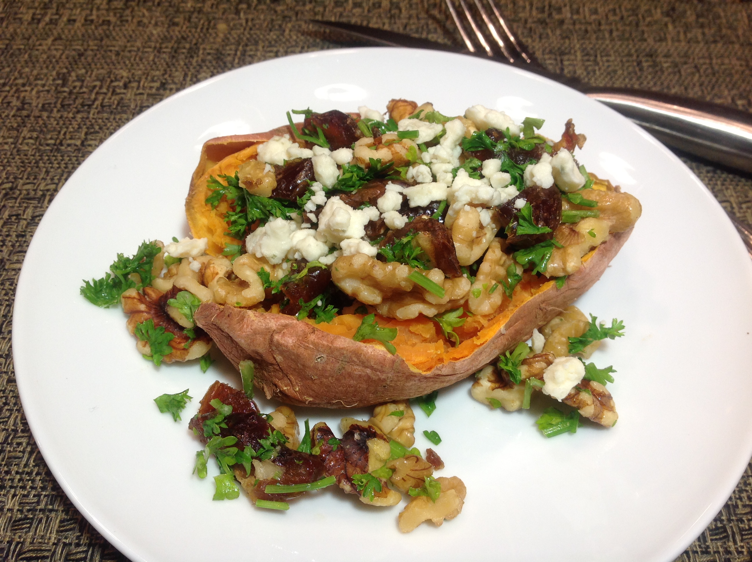 Stuffed Sweet Potatoes with Dates, Walnuts, and Gorgonzola