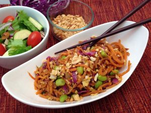 Gluten-free all-purpose flour. Bob’s Red Mill and Hodgson Mill offer good varieties, which are a nice blend of assorted flours like rice and tapioca, so the flour performs as desired. Favor “whole-grain” varieties. See our coaching tip for more on flours and gluten-free options.- Gluten-free pasta, made from corn, rice, quinoa, buckwheat or legumes. Or, replace pasta with veggies — spaghetti squash and spiralized zucchini noodles or sweet potatoes are great alternatives and useful to keep on hand. Try the Zucchini Noodles with Roasted Tomatoes or Pad Thai with Sweet Potato Noodles.