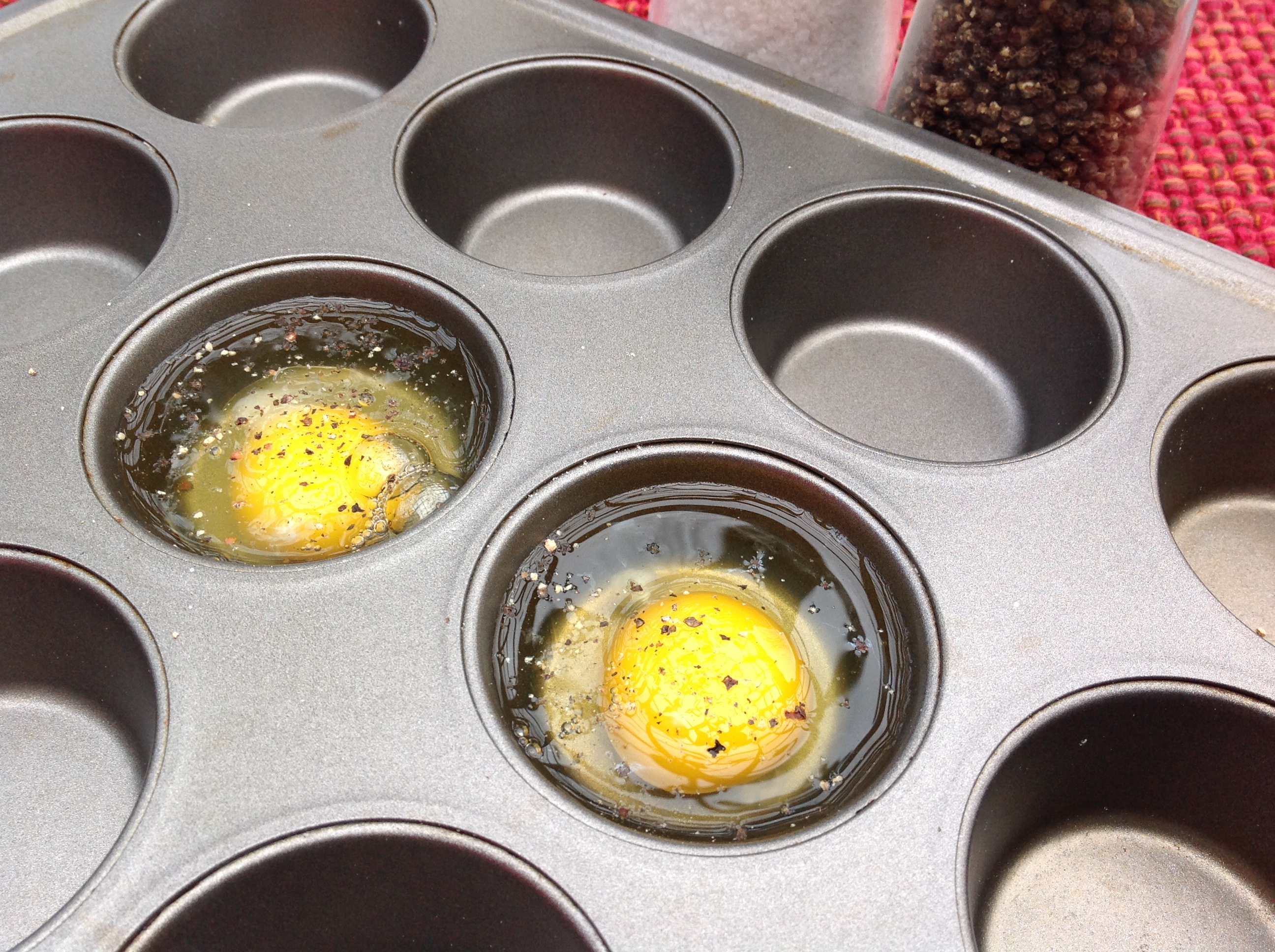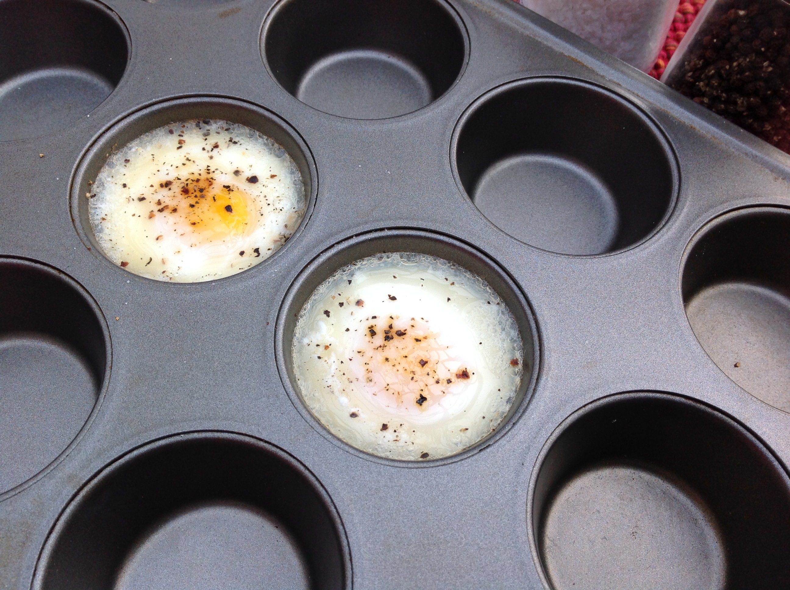 - Sprinkle each egg with a dash of salt and pepper, if desired.