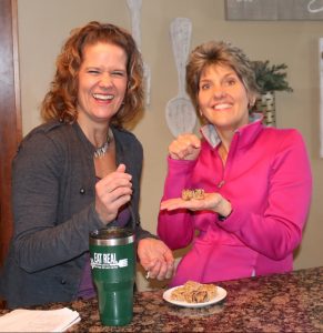 We enjoyed Asian Style Sloppy Joes over spaghetti squash and a new website test recipe — Thai Peanut Salad — to see if it would pass the test! (And, it did…it will be coming soon!) Zonya also spied the Baked Oatmeal Cups that were ready in the frig because we would be hitting the floor running each morning, and they were a life-saver!