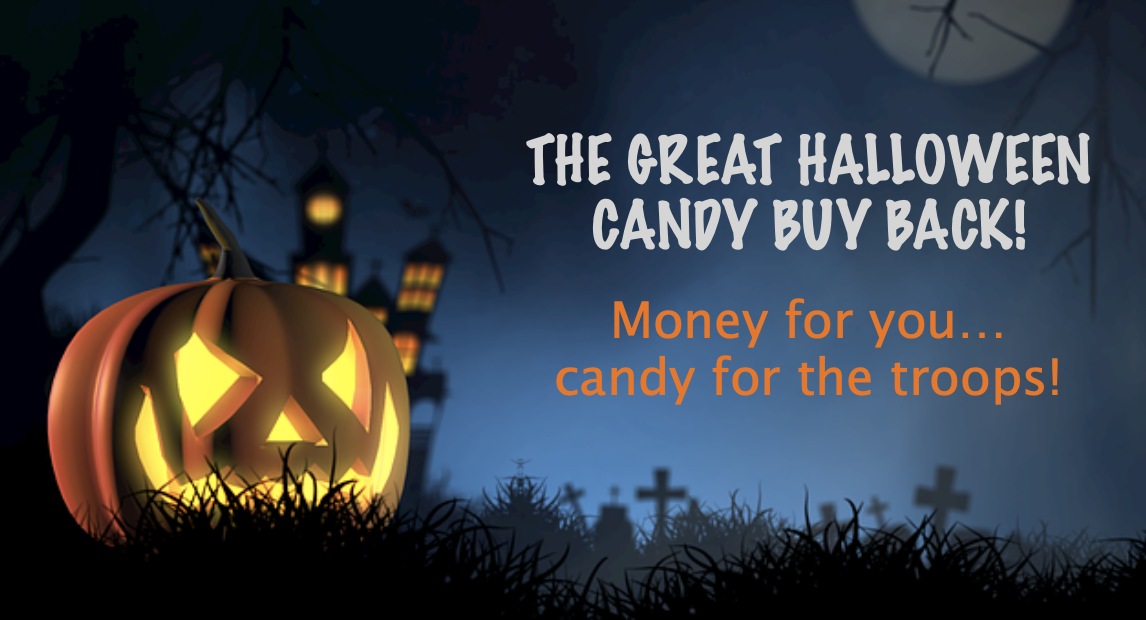 Get cash! As many of us have seen on Jimmy Kimmel, taking candy away from your kids, or telling them you ate it all, can have pretty traumatic effects! What about turning candy into cash? That is a much better idea! The Halloween Buy Back Program is a great option…check out this inspiring video showing local dentists who pay kids cash for their candy, and then donate the candy to the military.