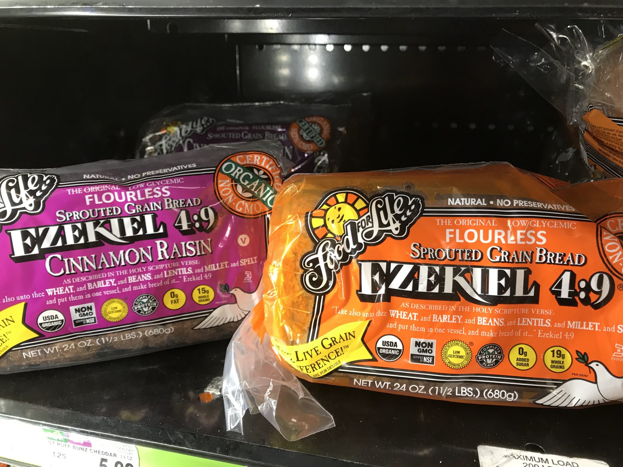 We like using the Ezekiel cinnamon raisin bread to make a great Cinnamon Raisin French Toast Bake.