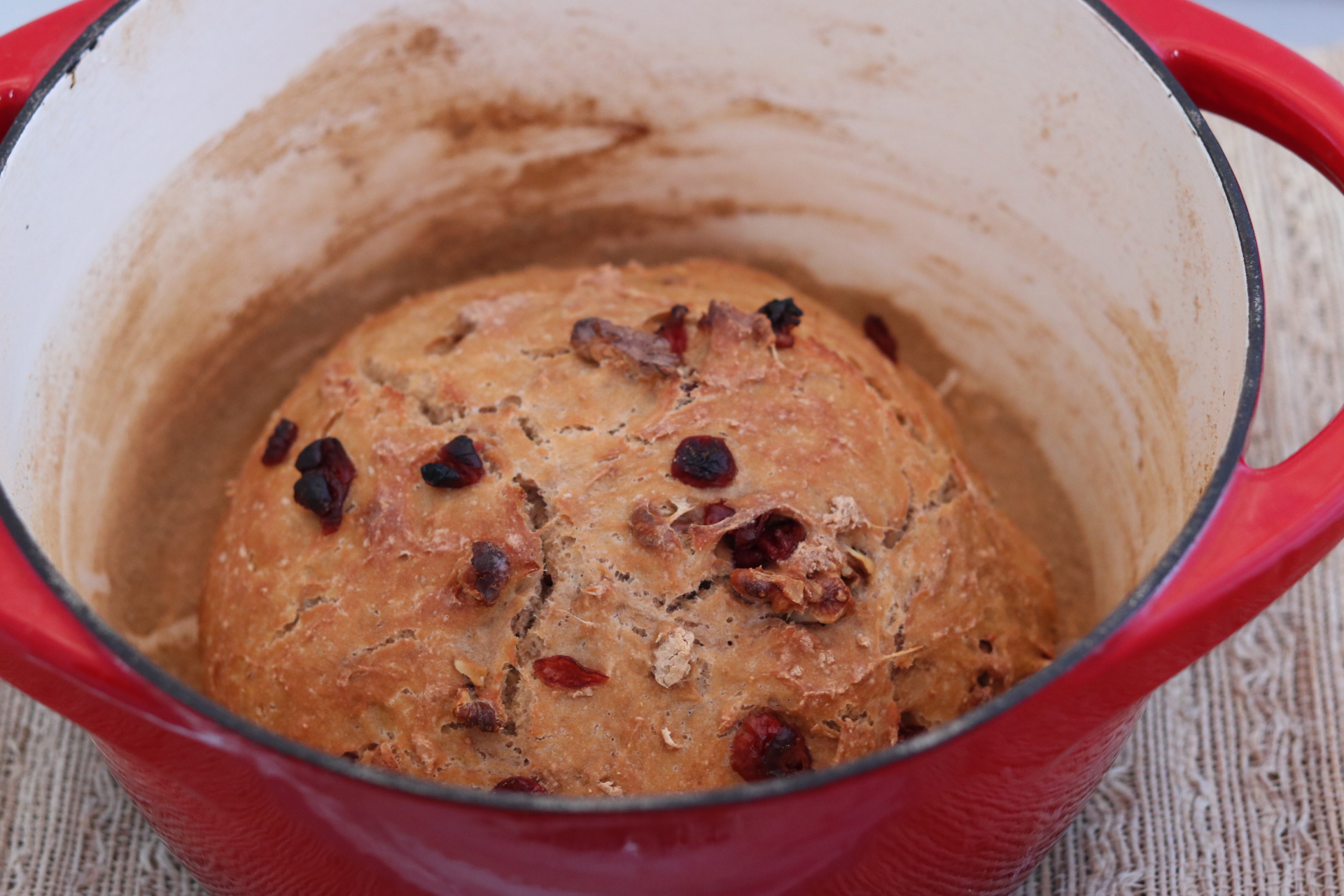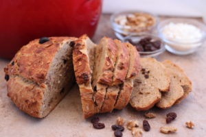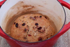 All that is required is a Dutch oven and a few simple ingredients (whole wheat flour, water, yeast, salt and your “add-ins”)!