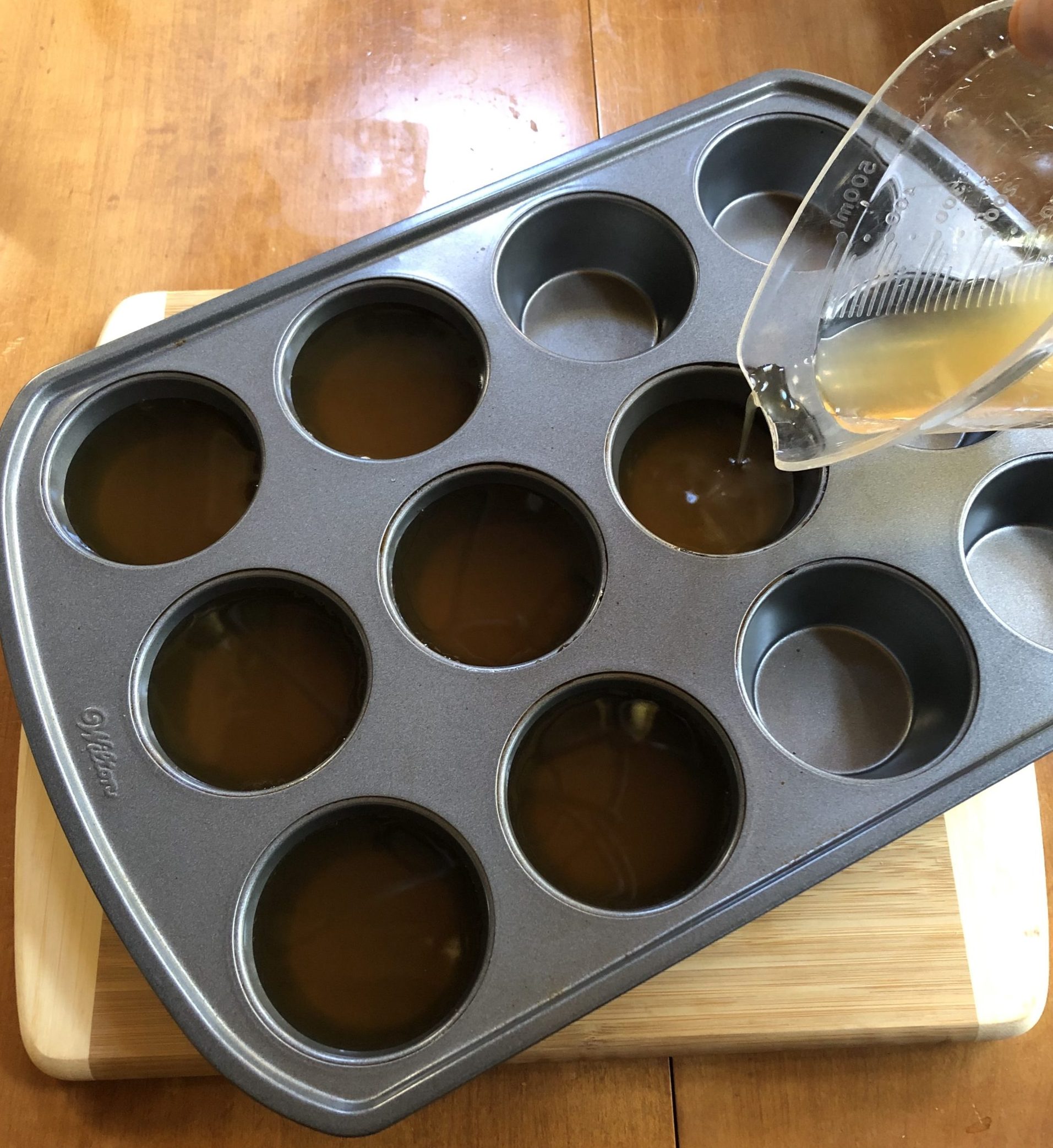 - Muffin pan measuring…pouring the broth in a standard muffin pan will give you 1/2 cup servings. Since you won’t want to keep your muffin pan in the freezer, once frozen, pop the frozen broth out of the pan and place the frozen sections in a plastic bag.