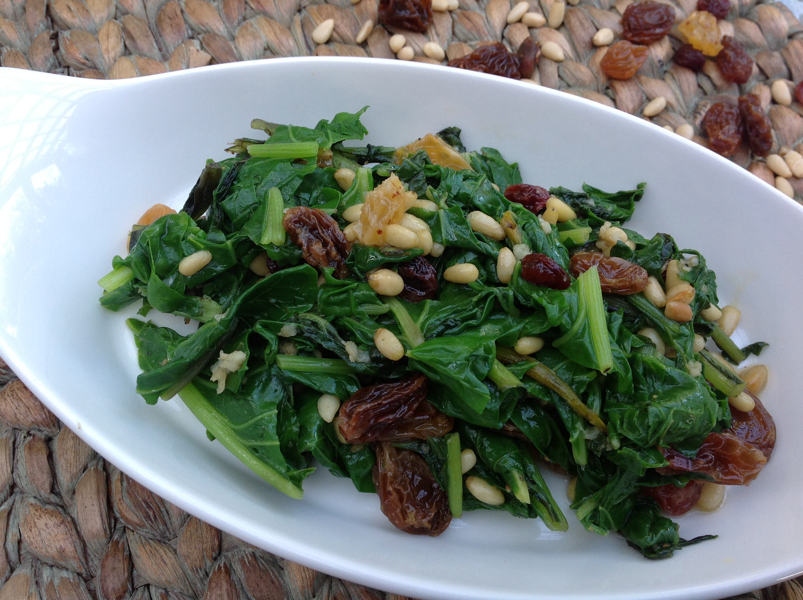 Blanch: to cook food briefly in boiling water, and then plunge it into ice water. Plunging it into the ice water is called “shocking” the food, and it also stops the cooking process. Blanching tenderizes the food or mellows out its flavor and can bring out the bright color of vegetables! Try the Swiss Chard with Raisins & Pine Nuts or the Green Beans with Charred Onions!