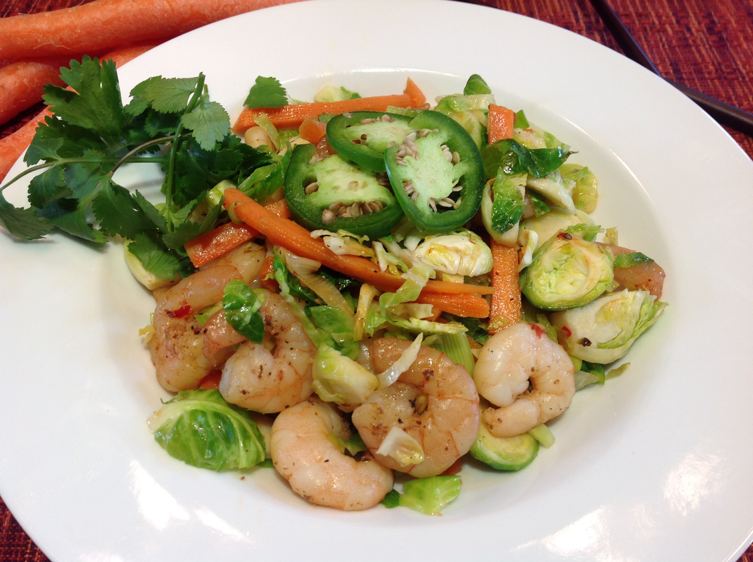Sauté: sautéing means cooking small pieces of food over a medium-high heat with a small amount of oil in the pan. It is a good idea to move the food around with a wooden spoon or spatula as you cook it. The goal is to brown the food slightly without burning it. Give the Shrimp and Brussels Sprouts Stir-Fry a try!