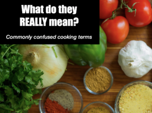 Since cooking can be a little more complex than just Step 1: Cook the food. Step 2: Eat the food…here is a list of some cooking terms and what they mean. Hopefully it will remove some of the mystery and increase your confidence to tackle all those great REAL food recipes!