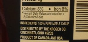 Umm, where exactly is the maple syrup?  And, hexameta what?!  Sounds appetizing right?  Not surprising, there is 15 grams of sugar (all added sugar) in just 2 Tbsp.  That is almost 4 tsp of sugar!  And, that is only 2 Tbsp!