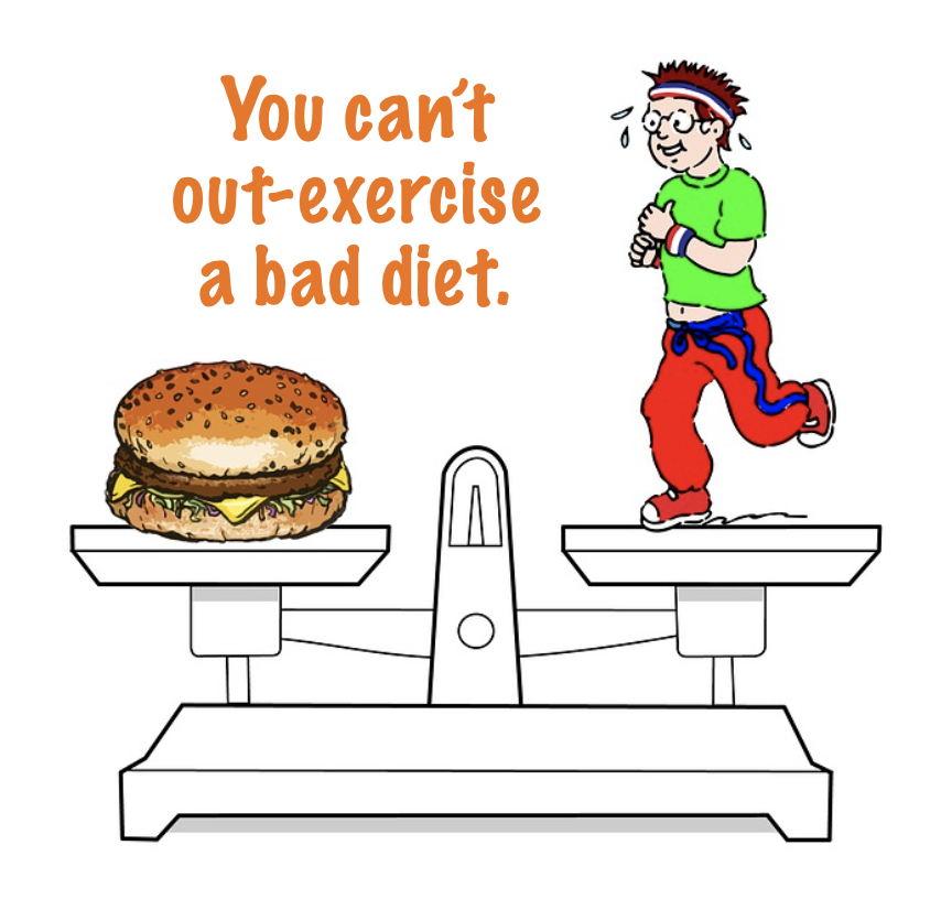 Quality of calories matter! Eating 2,000 calories of high calorie, nutrient-light foods does not have the same result as 2,000 calories of lower calorie, nutrient-rich foods. Unfortunately, exercise cannot erase the negative effects of processed foods.