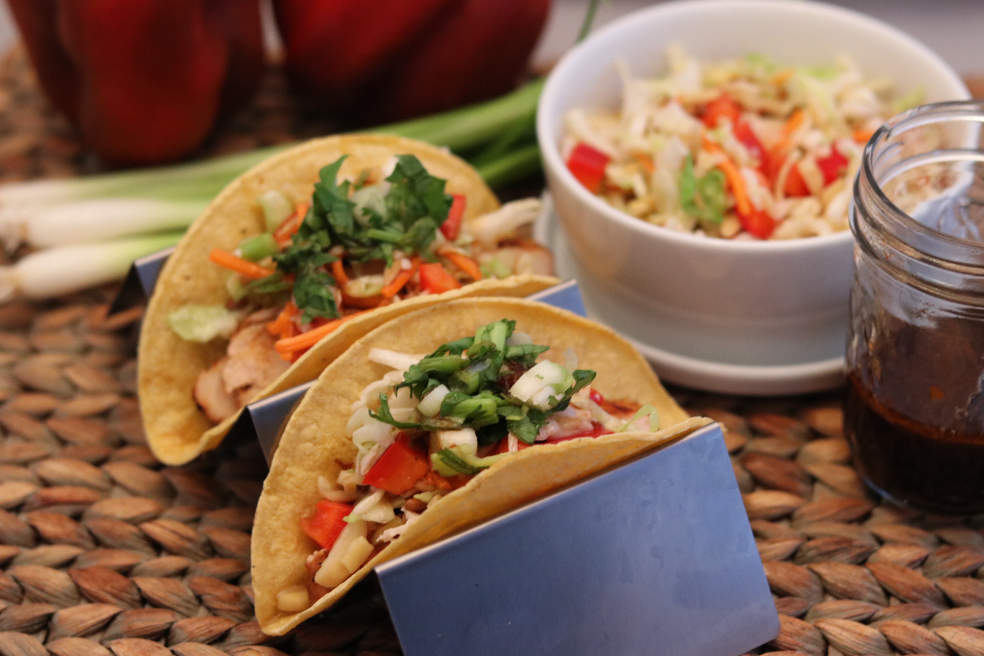 Korean BBQ Chicken Tacos topped with Crunchy Coleslaw and served with Grilled Asparagus vs. a double bacon cheeseburger and fries picked up from a nearby drive-through window. Which one would leave you satisfied and feeling energized, and which might have you saying, “I really shouldn’t have eaten that!”