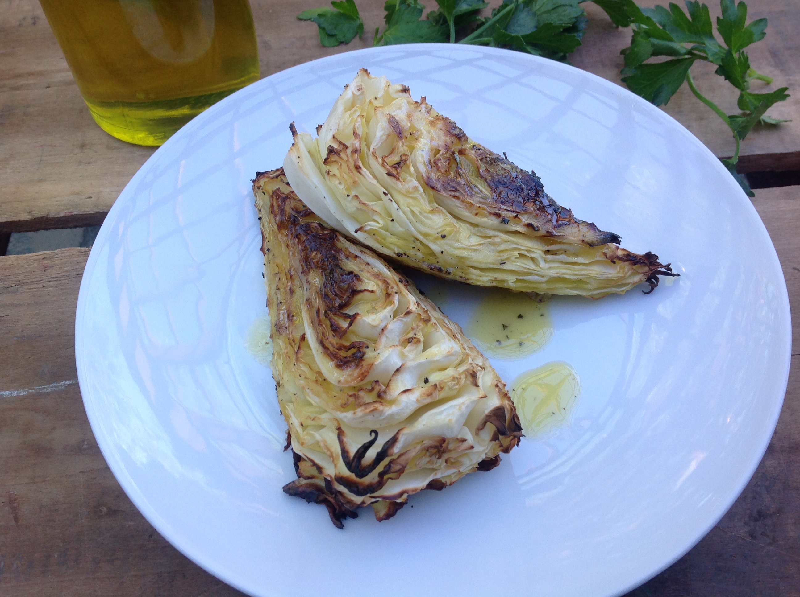 Cabbage: Cut into wedges, brush with olive oil, salt and pepper, and then grill until the edges are blackened and the cabbage begins to soften (typically 4-6 minutes per side).