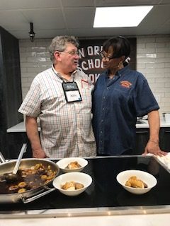 So when, in February, I saw that Morris Hospital was offering your Eat Real For Your Health program, I signed us both up to take the course! Ken was excited when he saw the Eat REAL Cookbook—did I mention he really enjoys cooking too? He is my sous chef in the kitchen, chopping all the veggies while I measure, mix, stir and fry, roast or bake. And summertime always finds him at his grill. We both are adventuresome eaters and love trying new recipes. (This is Ken at a New Orleans School of Cooking class.)