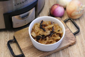 Another trick to cooking caramelized onions…using the magic of the slow cooker! The key to caramelized onions is low and slow which, as we know, is the slow cooker’s purpose in life!