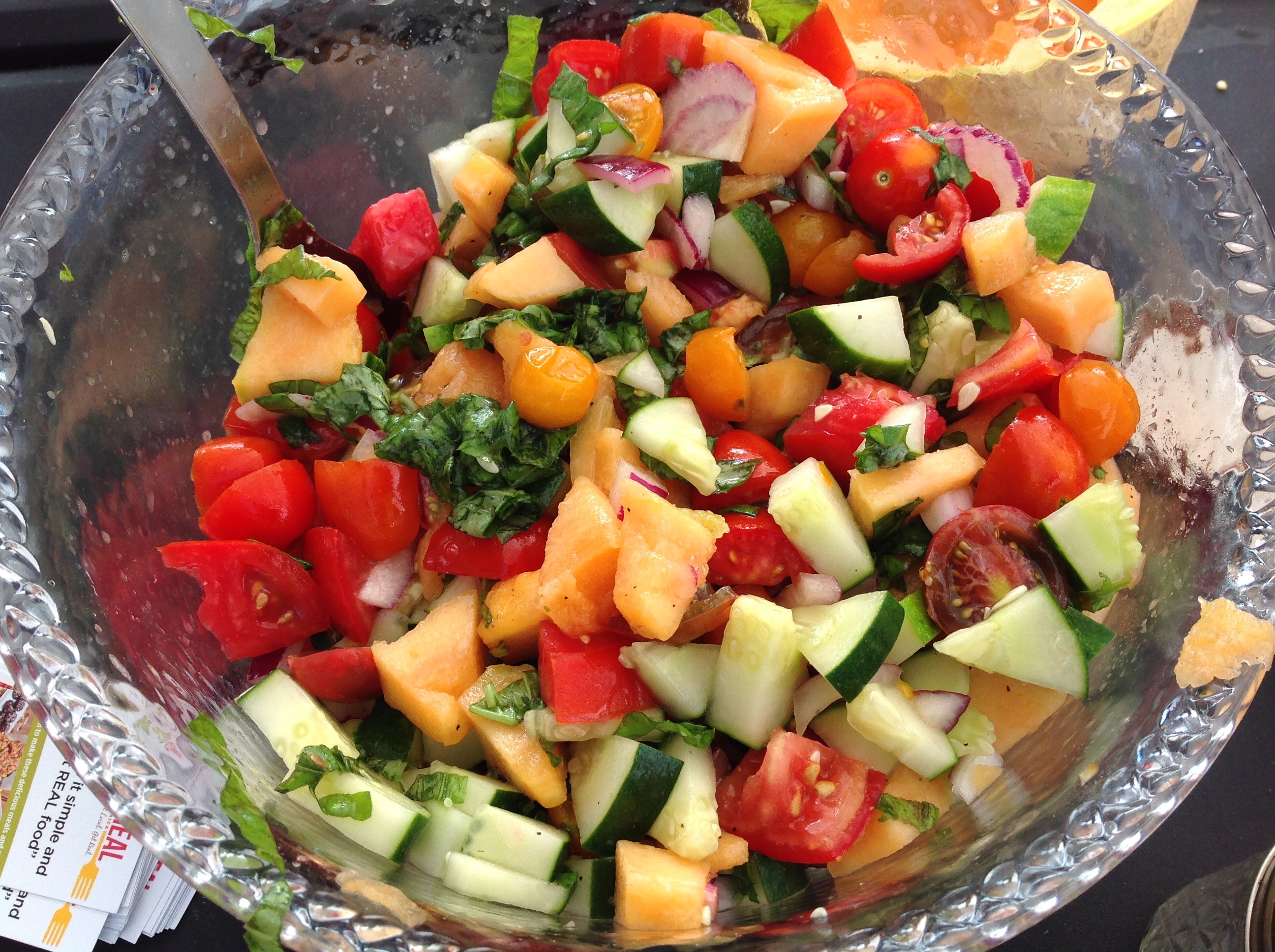 When we were serving up samples, a woman asked, “Can I get one with no cantaloupe? I just don’t like it.” We couldn’t resist. With all the ingredients mixed together, we asked if it was ok if her sample had just a few pieces of cantaloupe in it. She said that was fine. A few minutes later, she came back and excitedly said, “I am blown away. I have never liked cantaloupe my whole life, but I absolutely love that salad…including the cantaloupe!”