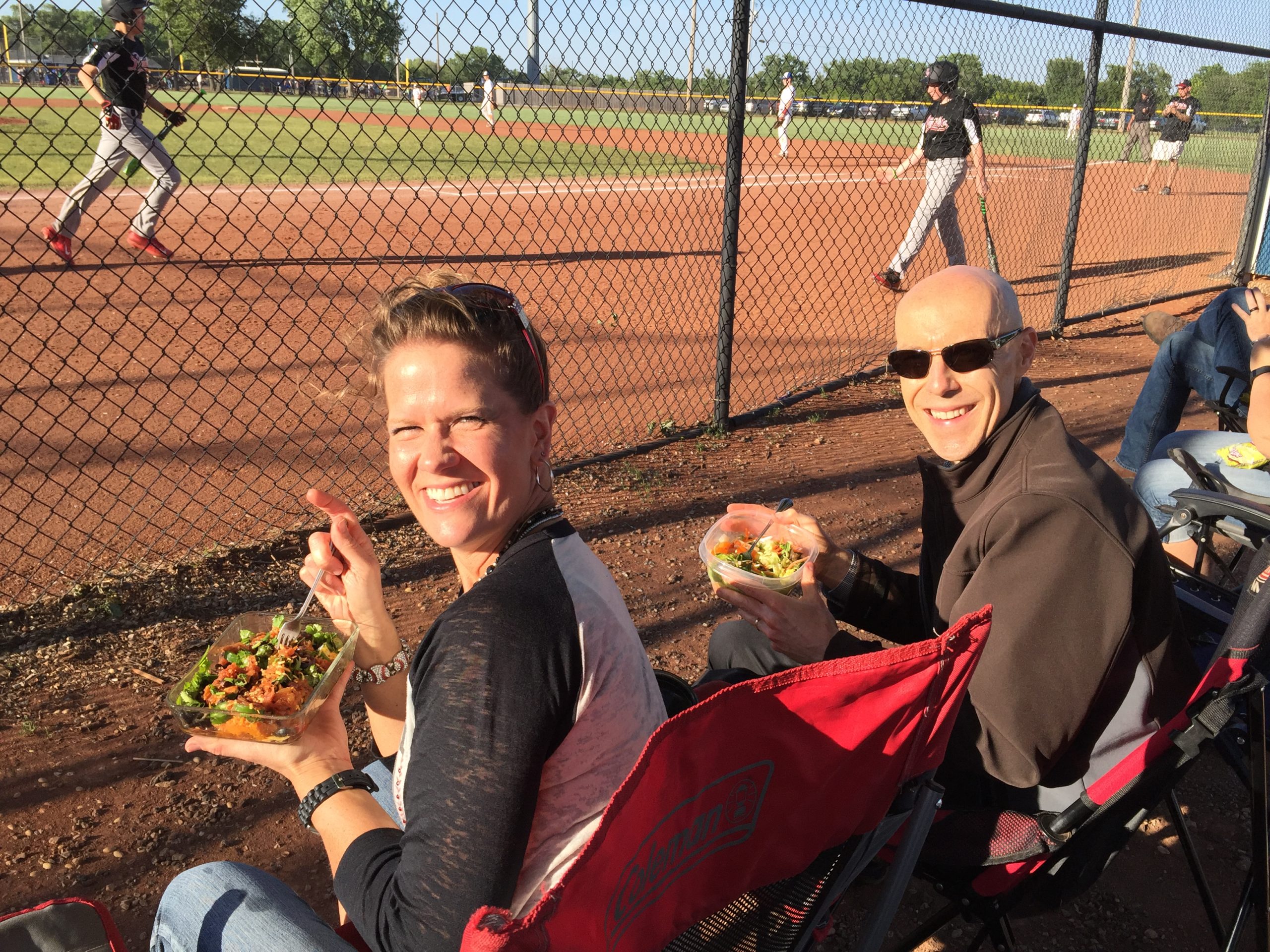 Concession stands can be a huge temptation. We are still in a stage of life where we are frequently at kids’ sporting events. And, what do they have to make sure you don’t go hungry…concession stands! And what do concession stands have? Of course…hot dogs, nachos, candy, buttery popcorn, pretzels, soda, among other not-so-great options! To avoid the unhealthy choices, we pack snacks from home. Air popped popcorn is one of our favorite go-to ballgame snacks, along with nuts, sunflower seeds, and fruits. And for what it’s worth, we have been known to pack salads and the Southwest Stuffed Sweet Potato for dinner for those evening games!