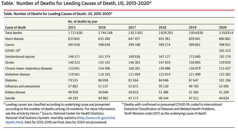 It’s true — the 345k Covid-related deaths in 2020 ranked third behind heart disease (690k) and cancers (598k).