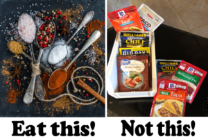 It’s important to realize there is a lot of sodium lurking in other grocery store foods as well…things like salad dressings, sauces, and cereal. And it can even show up in places you wouldn’t expect…such as in a simple can of diced tomatoes or in a can of black beans!