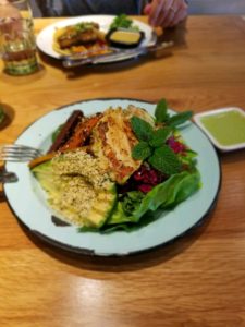 Eat REAL America member comment: Stepped out of our comfort zone and had fun trying healthy options. Refreshing after days of fried and unhealthy foods (we are traveling in the South). We had the Israeli style hummus and veggie appetizer, green goddess salad with chicken, and the fish tacos. Very tasty!