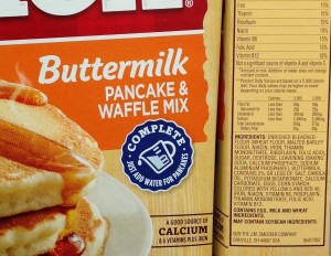 Unfortunately, these boxed pancake mixes provide a lot of empty calories that don’t really nourish us. The enriched wheat flour quickly converts to sugar in our bodies. Then, there are the added sugars (this example lists sugar AND dextrose) and artificial colors (Yellow 5 and Red 40)! This is hardly an ideal way to start our day…and our kids’ day. Sure, they may be convenient by “just adding water,” but at what cost? Our health?! Our performance?!