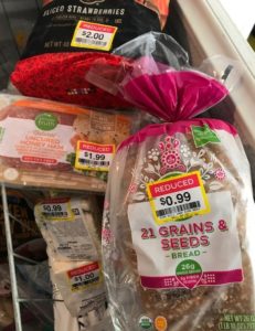 Stock up on discounted and sale items. Many stores will have clearance sections or have foods randomly marked down (sometimes 50% or more) throughout the store. Often, these are foods approaching their “best by” dates — they are typically perfectly fine to eat, especially if you are using them in the next day or two, or if you can freeze them for future use. Personally, our pantry and freezer are loaded with these “clearance” reduced stickers. You can also find great deals by monitoring weekly ads and using online coupons from your local stores.- Buy in bulk! For items with a longer shelf life (like whole grains, pasta and canned veggies) and frozen foods, you can buy larger quantities to get discounts. We often buy nuts (almonds, pecans and walnuts), maple syrup, almond butter, and other foods at our local wholesale clubs. We also use this strategy at the farmers’ market – for example we will buy several pounds of grass-fed beef and keep it in the freezer. And we buy large quantities of blueberries, corn on the cob, and Hatch chilies when they are in season and freeze them to enjoy throughout the year.