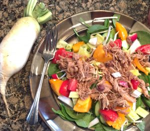 I had the opportunity to stay at the Sanderson’s for 6 days while we worked together. I had NEVER had a daikon radish, but they were “mainstays” of the salads Krista makes frequently.