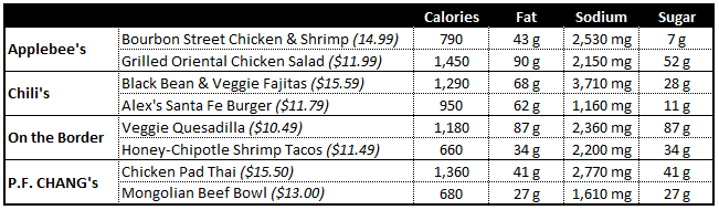 We want to take you on a visit to a few popular restaurants this week and see which of these options you would choose if you were trying to make “the healthy choice.”
