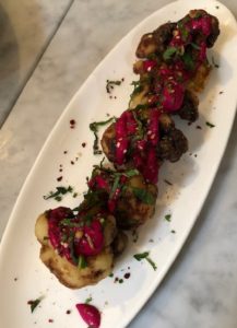 This showed up on several websites as one of the best restaurants in Nashville. It is a family-owned Lebanese bistro with some great-sounding menu options (things like Fattoush salad, Shakshuka, Shawarma and more). The restaurant was nice and we would describe the service as “indifferent.” They did all the things you would expect servers to do, but it felt like they were going through the motions – it certainly wasn’t a highly-welcoming experience. We were there for lunch and ordered a Mushroom Flatbread, a seasonal Roasted Acorn Squash with Chickpeas, the Arnabeet (crispy cauliflower, beet tahini, lemon, chili, parsley, mint and dukkah) and the Fattoush salad.