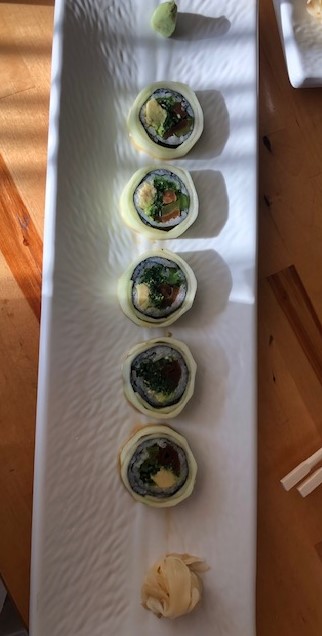 We consulted a local food blogger for ideas on the best sushi in Nashville. We ate an early dinner at Maru, a family-owned restaurant on the East side of town. We felt right at home, the service was great, and the sushi was fresh and flavorful. We especially enjoyed the Wild Cow Roll {Japanese pickles (shibazuke, kyurizuke, kanpyo) and avocado seaweed salad wrapped with cucumber peel and ponzu} and the Baja Fresh Roll {spicy tuna, cilantro and cucumber, topped with yellowtail, avocado and jalapeno with ponzu and chili sauce. We recommend it as a great option to satisfy a sushi craving.