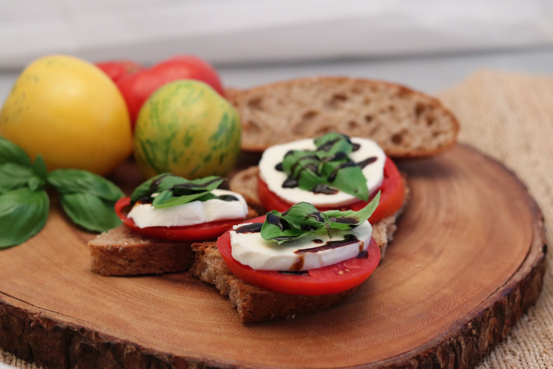 Eat REAL America favorites: Strawberry Basil Chicken, Strip Steak Over Shaved Brussels Sprouts, EBLT with Balsamic Mayo, Grilled Peaches, Balsamic Watermelon Chicken Salad, Roasted Stuffed Dates, Caprese Bruschetta, and Veg Out Flatbread Pizza!