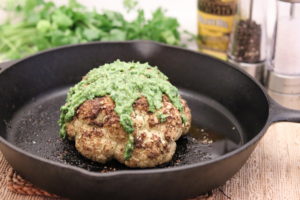 Eat REAL America favorites: Whole Roasted Cauliflower with Chimichurri, Brazilian Inspired Pizza, Grilled Chimichurri Chicken & Veggie Skewers, Roasted Veggie Salad with Chimichurri, Grilled Potato Salad with Chimichurri, Blackened Chicken with Mango & Chimichurri, and Grilled Steak Panini.