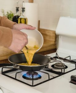 Add milk or cream for velvety scrambled eggs? Believe it or not, this one is quite controversial! Some people swear adding milk or cream (or even sour cream) creates a creamier consistency. However, there are others who believe it has more to do with how you cook them – low and slow! Other tips include don’t overbeat the eggs (just enough to combine the yolks with the whites); let the eggs cook slowly (stirring less if you want larger pieces or stir more for smaller pieces); and you can also add a little butter or oil before adding the eggs, if desired, to help keep them from sticking. Remember, use low heat and be patient for that velvety texture (it may take several minutes before the eggs start to cook and form).