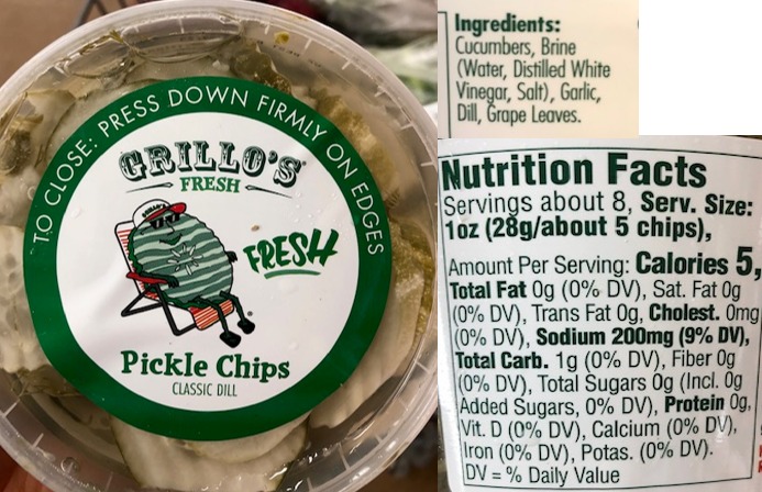 We love dill pickles and are always on the lookout for a healthier version. Recently we found Suckerpunch Gourmet Garlic Dill Spears in the specialty aisle at Aldis. The sodium is still a little high at 230mg per spear but otherwise there are no risky additives and they taste great.