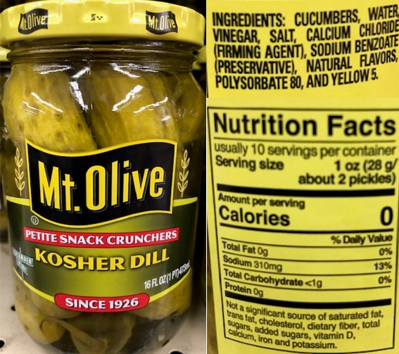 Industrial-jarred pickles can lose their color during the production process…they may even turn gray (appetizing, right?!)! So, to create a standardized product and overcome these effects, manufacturers often add color. There are natural food dyes such as turmeric or paprika, but artificial food dyes like Yellow 5 are brighter, cheaper and more stable — they can remain vibrant for years! Which is a quality we all look for in pickles…for them to last for “years?!”