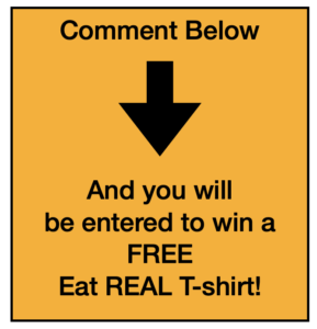 I love Eat Real America! I have the cookbooks and love them. I am currently going through the seminar and have learned so many great things……some things I knew and got a reminder of the importance of eating healthy food. I have not been able to be in the ZOOM meetings yet. I never miss a replay! I live out and our internet is being upgraded; therefore, I am doing what I need to do to get the tips and information. Thank you for your website, seminars, cookbooks and helping me to get back to healthy cooking and eating. I am 75 and want to live a long, healthy life. I would love to win a tshirt but fully intend to budget for one. Again, thank you for many new recipes and all the helpful tips I am learning!!