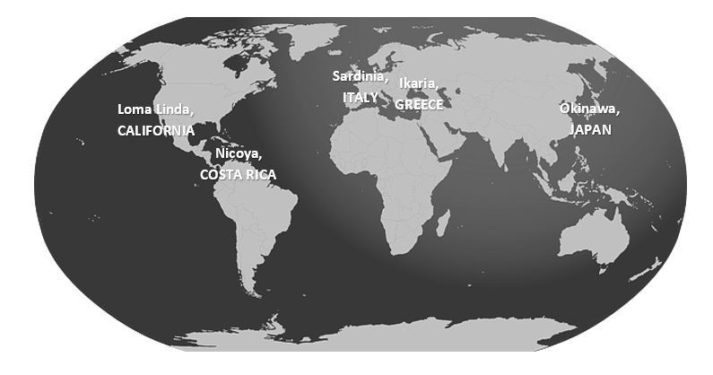 Over a period of 10+ years, a team of researchers, supported by National Geographic and others, worked together to find specific communities and regions where there is a high percentage of people that live to 100 years old – and where there is a much lower percentage of people with chronic disease.
