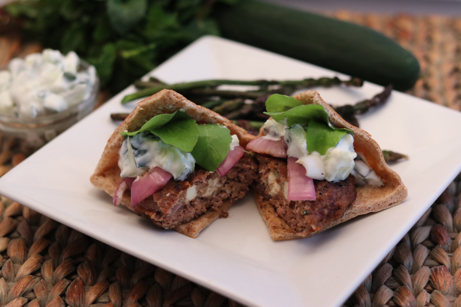 Instead of a bun, serve the burgers in a whole grain pita (like the Feta Stuffed Lamb Burgers) or on a whole grain English Muffin (like the Green Chile Turkey Burgers or the Greek Style Turkey Burgers). The pitas and English Muffins tend to be less dense, allowing you to get the best of the flavors of the burgers and toppings. We have found thinly sliced whole grain sourdough bread as another great option.- Serve the burger open-faced (like the Banh Mi Burger or the Guinness-Marinated Bison Steak Sandwiches).