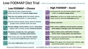 The following is a brief overview of the foods both HIGH (to choose less of) and LOW (to choose more of). And yes, these are RANDOM, and hard to memorize, so a chart on the fridge may help: FODMAP Foods Eat REAL America.
