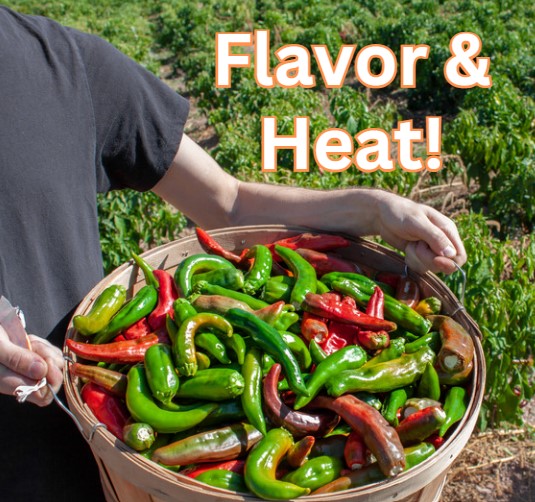 The heat profile of the Hatch chilies is unique — it’s a delayed heat. These chilies truly provide a unique combination of flavor and heat! This makes them ideal to use in a wide variety of recipes…everything from Mexican dishes to burgers to seafood to chili…believe it or not, you can even use Hatch chilies to add a unique flavor and kick to your favorite dessert!
