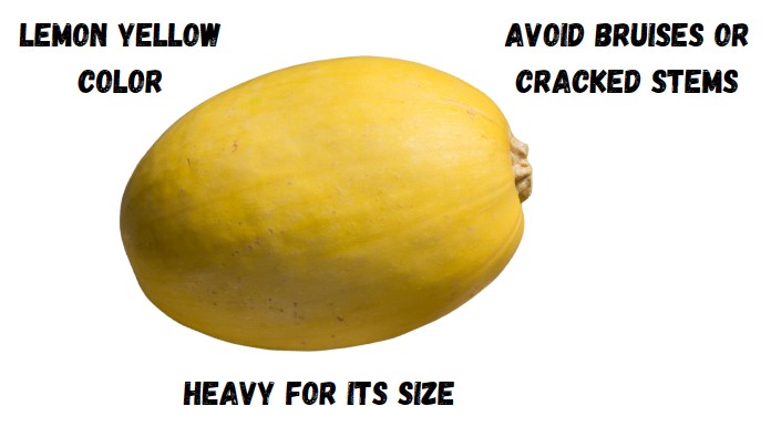 The spaghetti squash should look lemon-yellow. It’s perfectly fine if there are varying colors of yellow, but you don’t want it to be green or white or have soft spots.- It should feel heavy for its size.