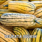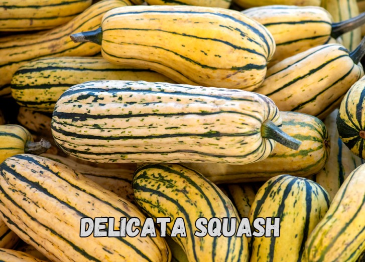 Delicata squash: also known as the “sweet potato squash,” this squash is shaped like a small cylinder and typically has yellow or cream-colored skin with green stripes.