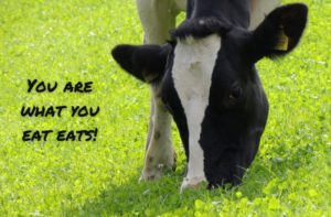 You are what you eat eats. (Are those cows eating natural grass out on the prairie or processed grains in a confined area?)